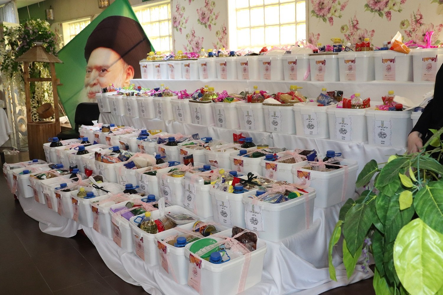 أما السلة الغذائية، فقد احتوت مواد تموينية ضروية من حبوب وزيوت ومعلبات وغيرها.