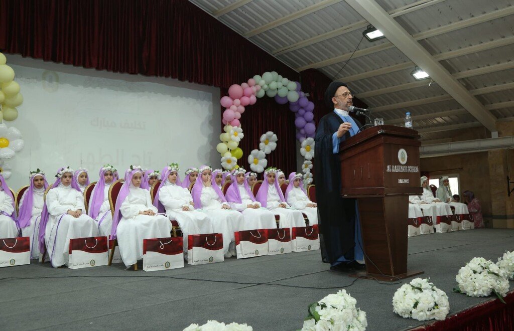 ودعا سماحته إلى تربية هذه الأجيال على الإيمان وحب الوطن والدفاع عنه وتقديم التضحيات من اجله مستغربا كيف يتهم البعض المدارس الإسلامية بانها غير وطنية فنحن نربي طلابنا على الانفتاح على كل مكونات هذا الوطن ونعيش همومه وقضاياه ونؤكد على ضرورة دراسة الكلمة قبل اطلاقها لنطلق الكلمة الأحسن التي تجمع ولا تفرق وتحرك العقل لا الغريزة والتي تسمو بالإنسان أخلاقيا وروحيا وفكرياً لأننا بها يمكن ان نحفظ هذا المجتمع ونوحده ونعزز وحدته الوطنية.