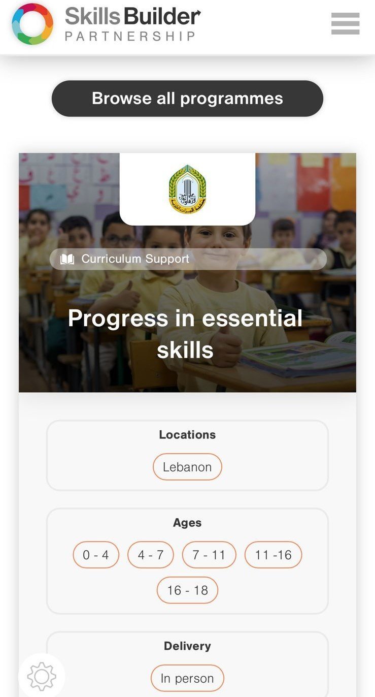 تجدر الإشارة إلى أن شبكة Skills Builder تضم أكثر من 800 مؤسسة من 50 دولة حول العالم ، منها مؤسسات تربوية وشبابية وريادية. وتعد جمعية المبرّات الخيرية المؤسسة الوحيدة المشاركة في لبنان.