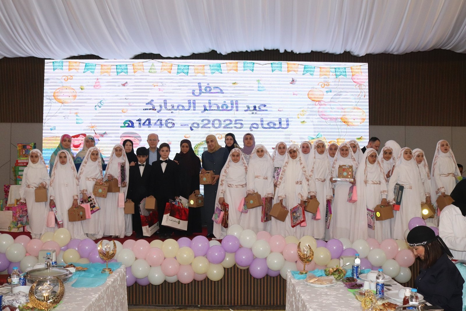 وفي ختام الحفلتين، قام مدير عام المبرّات بتوزيع كسوة العيد والعيديات والهدايا على الأطفال، ليختتم يومًا حافلًا بالبهجة والسعادة.