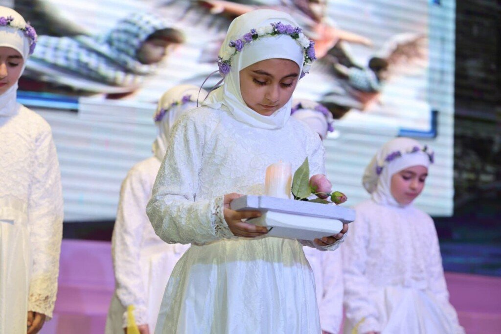 آيات من القرآن الكريم تلتها مجموعة من الفتيات المكلفات. ثم كان عرض لفيلم يوثق احتفالات التكليف واخر تحت عنوان “وردة الدار” يظهر اهتما وحرص الثانوية على تكزيم المكلفات.