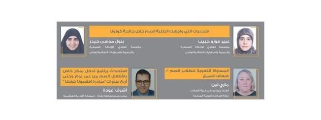 إضافة إلى ذلك تحدثت الورقة عن مضاعفات الحجر المنزلي على الصم وتحديات المنحى النفسي الإجتماعي والإقتصادي، حيث تم اعداد برامج دعم نفسي، متابعة العلاج النفسي، إعداد رزم الدعم النفسي الاجتماعي، عقد لقاءات مع الأهل وجلسات فردية وجماعية مع الأبناء.