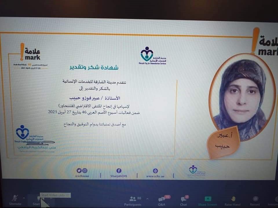جرى المؤتمر عبر تطبيق zoom وشارك فيه العديد من الدول العربية قدموا خلاله اوراقا وعروضا عن كيفية معالجة التحديات التي فرضتها جائحة كورونا على تعليم التلامذة الصم وكيفية متابعتهم تربويا وعلاجيا ونفسيا.
